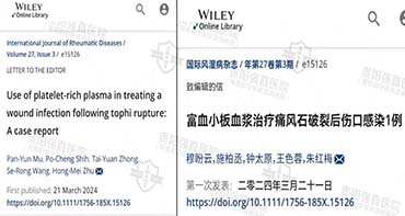 此次SCI文章《富血小板血漿治療痛風(fēng)石破裂后傷口感染1例》的收錄,標(biāo)志著我院在痛風(fēng)、痛風(fēng)石臨床診治及科研方面,具備專業(yè)領(lǐng)先水平!