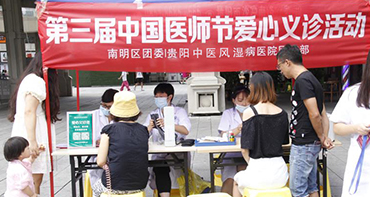 為慶祝第三個(gè)中國醫(yī)師節(jié),8月19日,我院組織部分業(yè)務(wù)高超、技術(shù)精湛的醫(yī)護(hù)人員到貴陽市花果園社區(qū),開展“第三屆中國醫(yī)師節(jié)愛心義診活動(dòng)”。